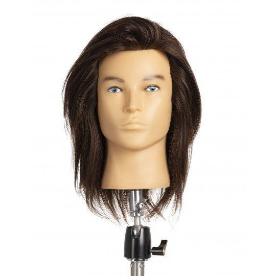 Human hair - Indian Colour - Dark - Number 4/5 Density - high Length - 25 cm Implantation - natural Training head basic ideal for practising men cutting in education courses, also for trainings in schools. Possibility to bleach, color and do balayage on this mannequin head. You can also practise different styling or hairdressing techniques (blow-dry, straightening, curling etc.) This head is not supplied with support (holder or tripod).
